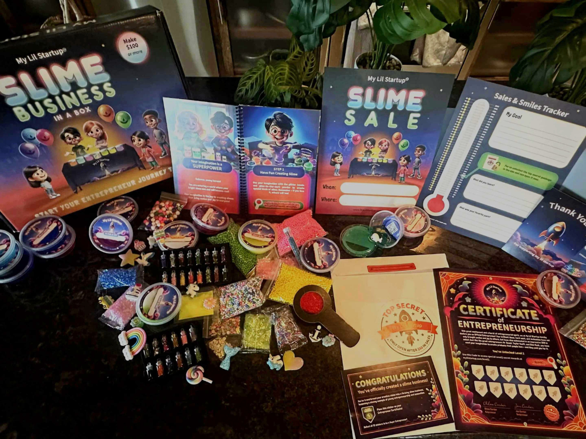 One weekend, Chloe wanted to do another lemonade stand, and I suggested she try selling something she liked instead. Chloe was obsessed with making slime. So, we had a slime-making party with her friends. They had a ton of fun creating all kinds of colorful and gooey slimes.